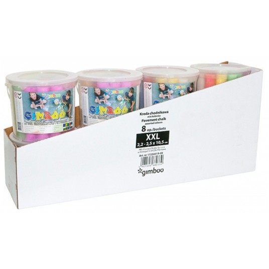 - W plastikowym wiaderku z rączką - Do rysowania na placach zabaw - Stożkowy kształt, z lekko zaokrągloną jedną końcówką - Długość: ok. 105mm - Średnica: ok. 25mm - Nie zaleca się korzystania przez dzieci poniżej 3 roku życia - 20 sztuk w j.s. - Kolor: mix kolorów
