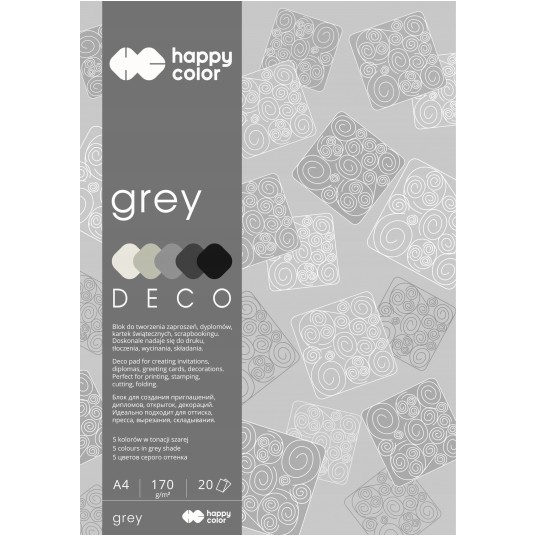 Blok deco grey A4, 170 g/m2, zestaw 20 arkuszy, 5 kolorów | espryciarze.pl |Weź najlepszą cenę!
