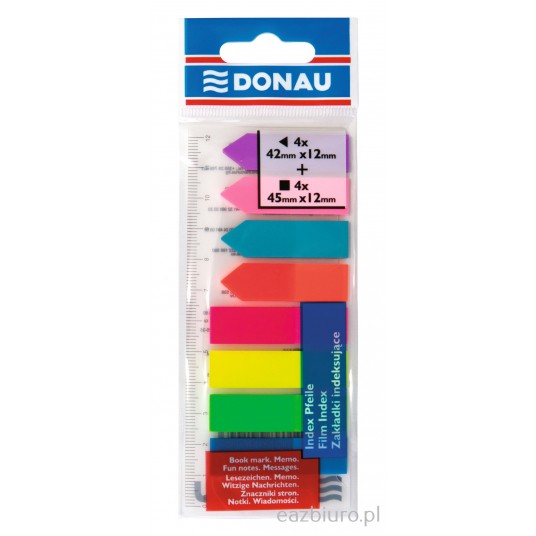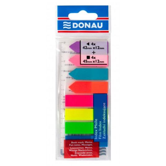 - Zakładki indeksujące, idealne do pozostawienia wiadomości zarówno w biurze jak i domu - Ilość karteczek strzałek: 4x25 w rozmiarze 12x42mm - Ilość karteczek: 4x25 w rozmiarze 12x45mm - Wykonane z folii PP o grubości 60µm - Wielorazowe, ultra cienkie - W zestawie linijka wyskalowana do 12cm - Nowe, żywe, fluorescencyjne kolory nie pozwalają przeoczyć znacznika - Klej usuwalny za pomocą wody - Kolor neonowy