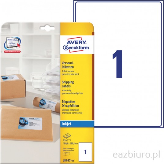 Etykiety wysyłkowe białe Avery Zweckform; A4, 25 ark./op., 199,6 x 289,1 mm