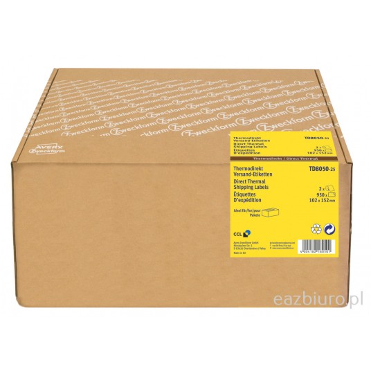 Etykiety wysyłkowe do termodruku w rolce; rdzeń 25 mm; 475 etyk. /rolka; 2 rolki / op.; 102 x 152 mm; białe; Avery Zweckform