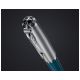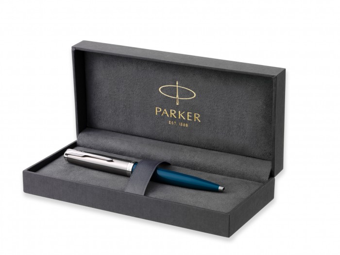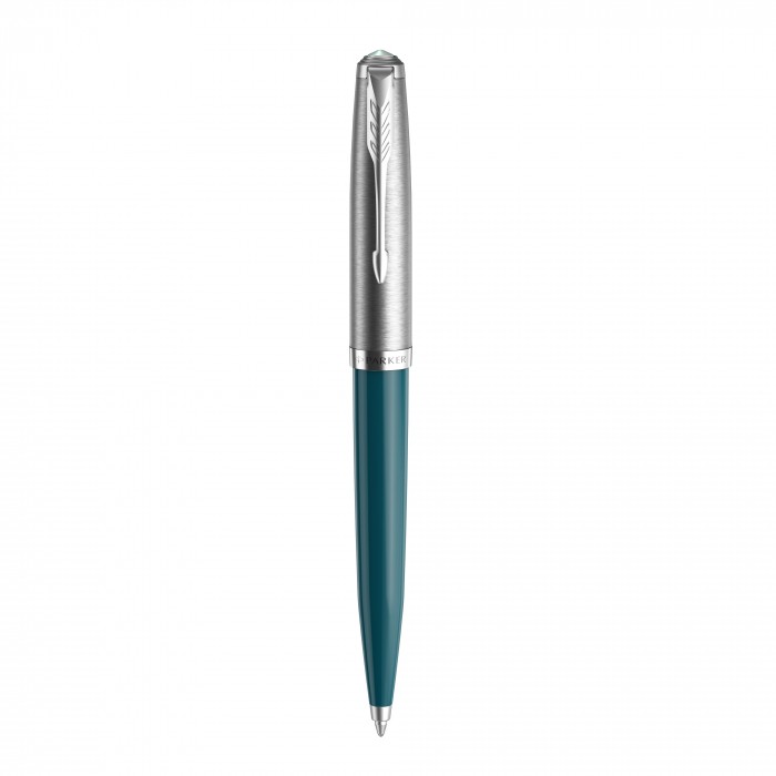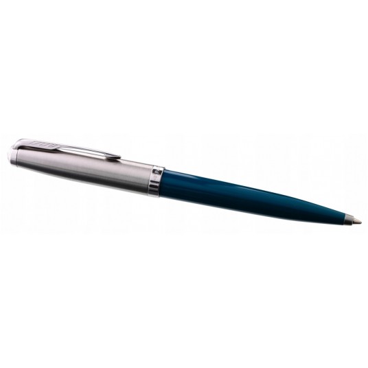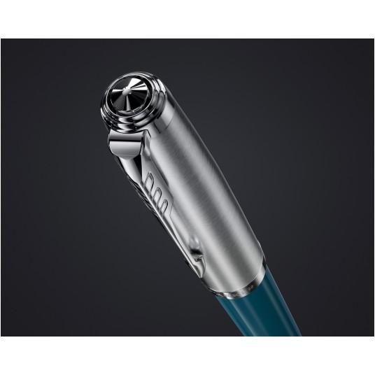 - Ciemno turkusowy długopis Parker 51 teal CT to spełnienie marzeń wszystkich fanów produktów piśmienniczych tej marki. - Jest on niezawodny oraz doskonały pod względem formy. Ciemna, turkusowa żywica na korpusie pięknie prezentuje się w zestawieniu z chromowanymi wykończeniami. - Średnia końcówka długopisu i czarny tusz zapewniają przyjemne pisanie. - Jest to długopis, który swoim wyglądem nawiązuje do kultowej już serii Parker 51, która debiutowała w roku 1941, a która od wielu lat nie jest już w regularnej sprzedaży. - Wygląd nowej serii to hołd, jaki marka Parker złożyła zarówno tamtej serii, jak i jej miłośnikom. - Warto wybrać ten piękny długopis do codziennego użytku, zwłaszcza, że jest on piękny i funkcjonalny. - Parker 51 to seria nawiązująca do tradycji. - Uznawana była za najbardziej pożądaną serię piór na świecie, kusząc swoimi walorami. - Dlatego nowa seria 51 ma bardzo wysoko postawioną poprzeczkę. - Patrząc na piękny wygląd i dobrą jakość, jaką oferuje, z całą pewnością będzie w stanie sprostać oczekiwaniom miłośników piór i długopisów Parker. - Piękne pudełko, jakie znajduje się w zestawie dopełnia niesamowity wygląd, tworząc niezapomniany efekt końcowy. - Z tego powodu warto nie tylko wybrać ten piękny długopis dla siebie, ale i wręczyć go w prezencie.