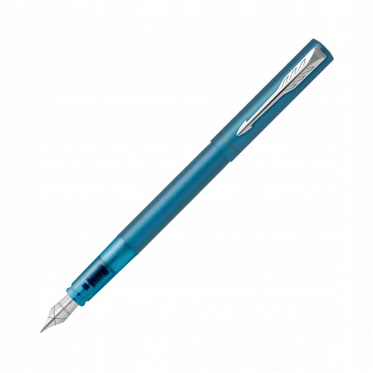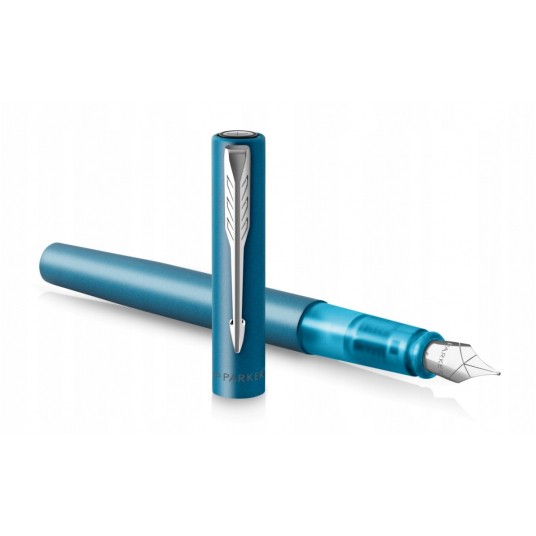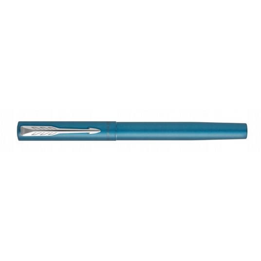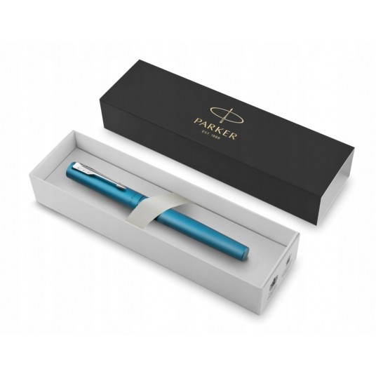 - Metaliczne wykończenie w kolorze morskim uzupełnione chromowanymi wykończeniami i charakterystycznym klipsem w kształcie strzałki PARKER.