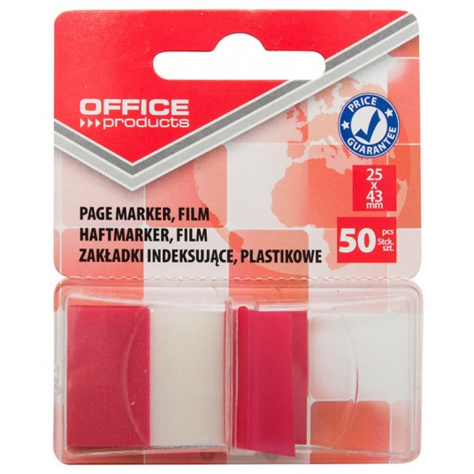 - Idealne do pozostawienia wiadomości zarówno w biurze jak i domu - Ilość zakładek: 1x50 w rozmiarze 25x43mm - Wykonane z folii PP o grubości 60µm - Wielorazowe, cienkie - Można po nich pisać cienkopisami lub markerami - Dyspenser wykonany z PP - Zakładki w intensywnych, żywych kolorach - Klej usuwalny za pomocą wody - Na blistrze - Kolor: czerwony