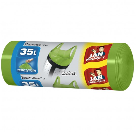 - Worki na śmieci o pojemności 35 l, zapachowe - 30 sztuk w opakowaniu. - Posiadają uszy do zawiązywania. - Wymiary: 49 x 60 cm + 17 cm - Pojemność worka na śmieci: 35L - Typ worka na śmieci: zapachowy