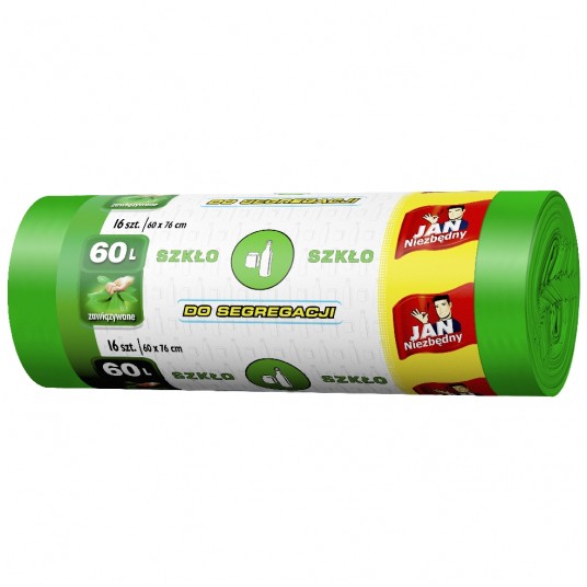 Worki na śmieci - szkło, easy-pack zielone Jan Niezbędny 60l 16 szt.