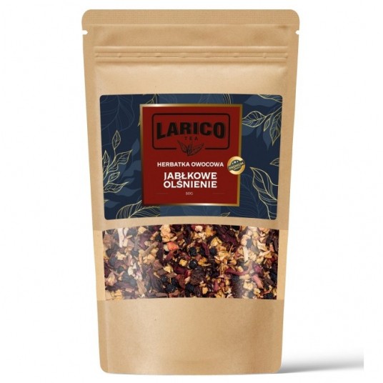 - Herbatka owocowa Larico Jabłkowe Olśnienie to mieszanka owoców jabłek, aronii, rodzynek, goździków i kory cynamonu