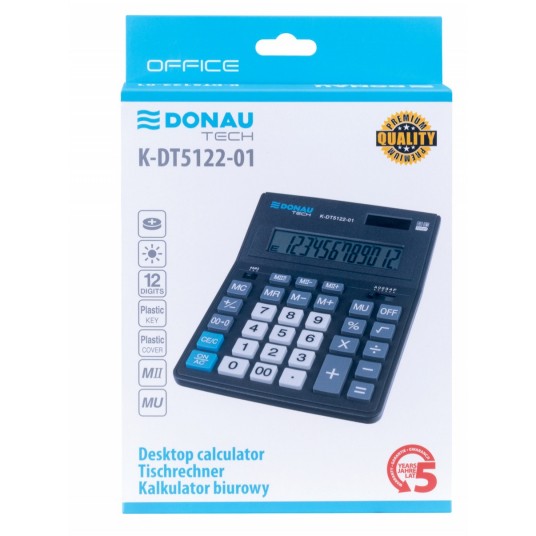 Kalkulator biurowy DONAU TECH OFFICE, CI-CDB1201BK, 12-cyfr. wyświetlacz, wym. 201x155x35mm, czarny