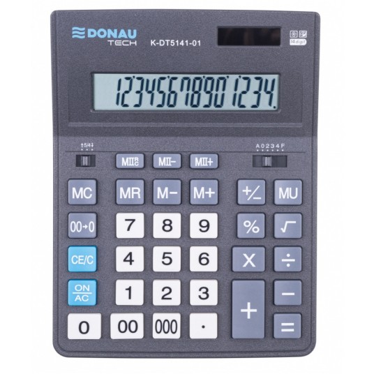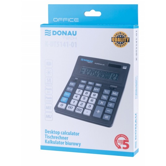 Kalkulator biurowy DONAU TECH OFFICE, CI-CDB1401BK, 14-cyfr. wyświetlacz, wym. 201x155x35mm, czarny