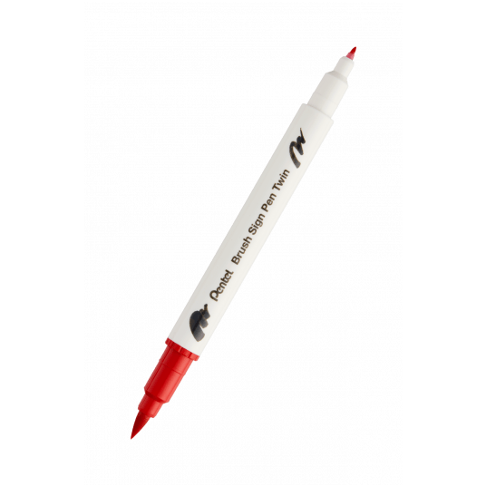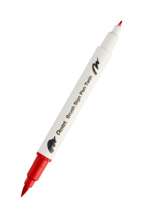 Dwustronny pisak pędzelkowy do kaligrafii brush sign pen twin Pentel czerwony
