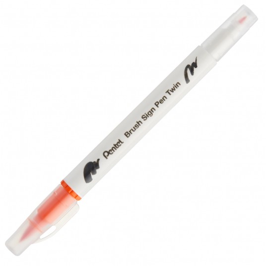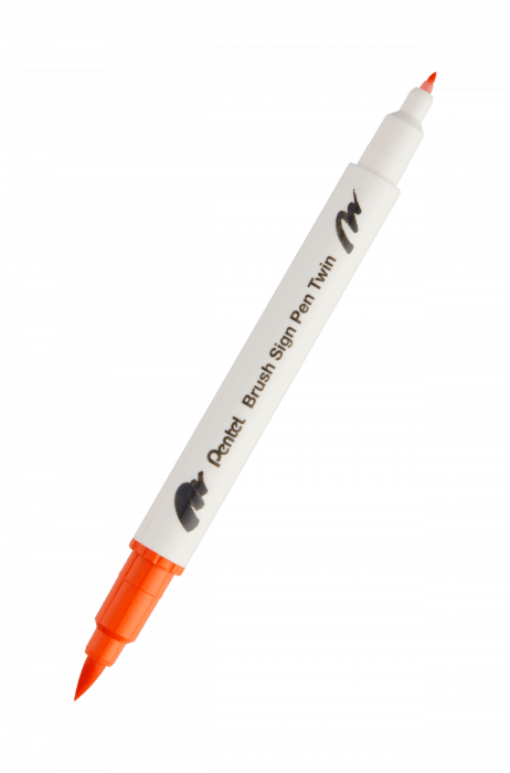 Dwustronny pisak pędzelkowy do kaligrafii brush sign pen twin Pentel pomarańczowy