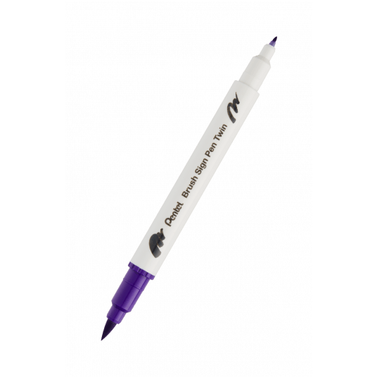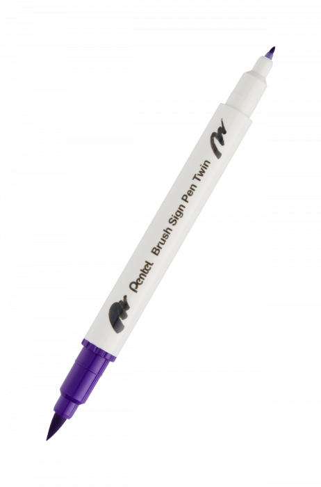 Dwustronny pisak pędzelkowy do kaligrafii brush sign pen twin Pentel fioletowy