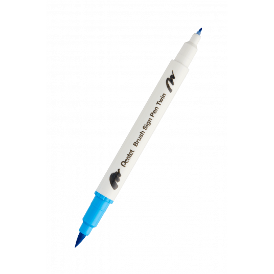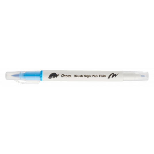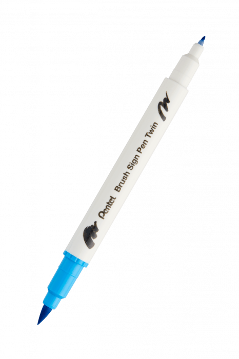 Dwustronny pisak pędzelkowy do kaligrafii brush sign pen twin Pentel błękitny