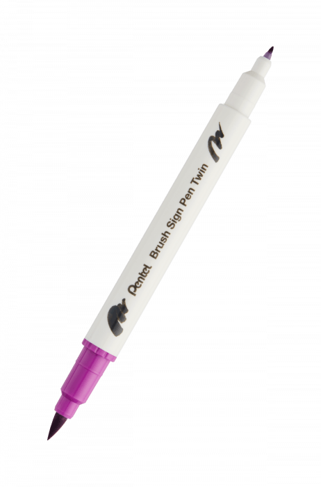 Dwustronny pisak pędzelkowy do kaligrafii brush sign pen twin Pentel magenta