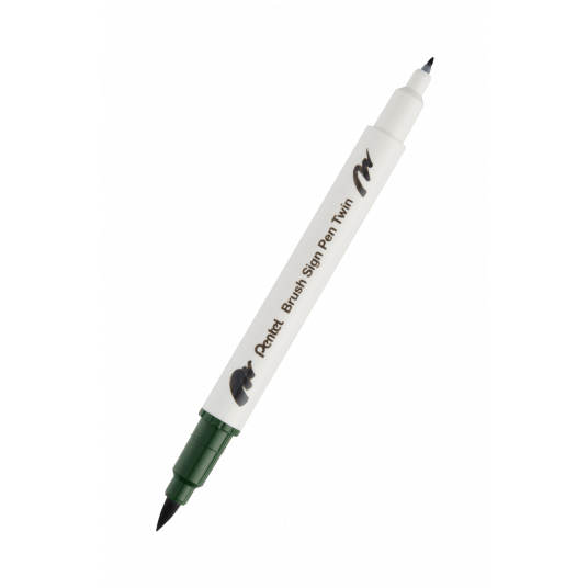 - Dwustronny pisak do kaligrafii dla osób, które stawiają pierwsze kroki w liternictwie. - Posiada dwie końcówki - Gruba : Miękka i elastyczna, dzięki płynnemu prowadzeniu rysuje wąskie i grube linie - Cienka: Zbliżona do flagowego pisaka pędzelkowego SES15C; linia pisania jest cieńsza niż SES15C - Dzięki krótkiej końcówce mamy jeszcze większą kontrolę nad grubością lini - Twin Tip Brush Sign Pen jest łatwy w użyciu - Tusz na bazie wody - Przezroczysta nasadka ułatwia rozpoznanie koloru tuszu - Dostępny w 30 kolorach - Zastosowanie: pismo odręczne, nowoczesna kaligrafia, ilustracje, prowadzenie dzienników oraz kolorowych notatek - Kolor oliwkowy-zielony