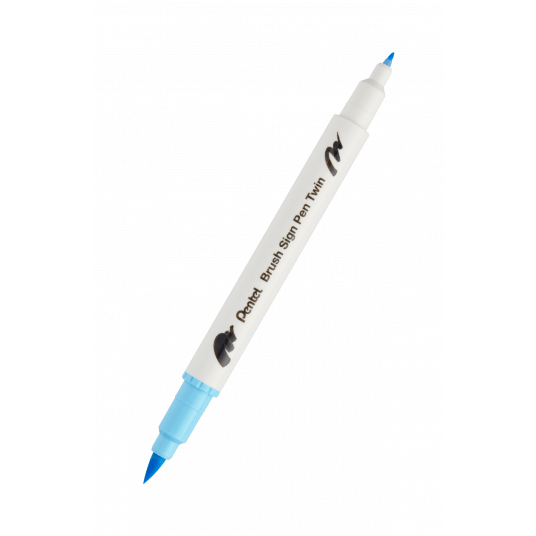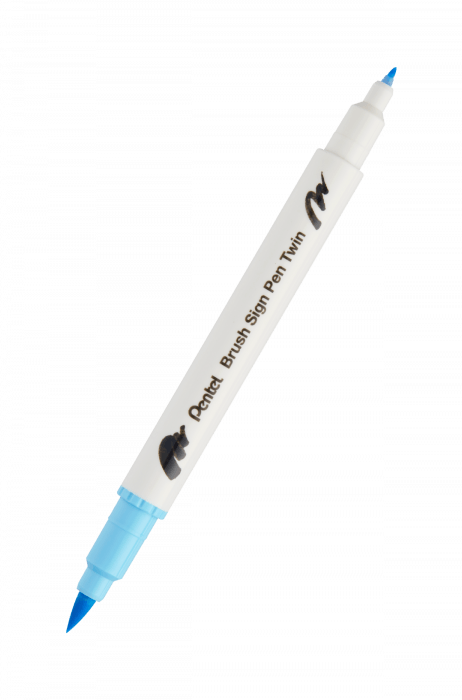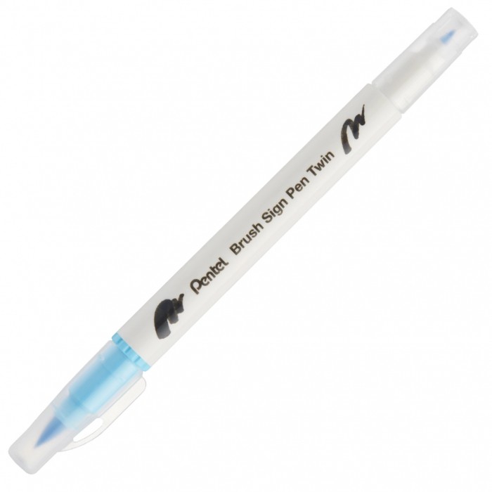 Dwustronny pisak pędzelkowy do kaligrafii brush sign pen twin Pentel jasnobłękitny