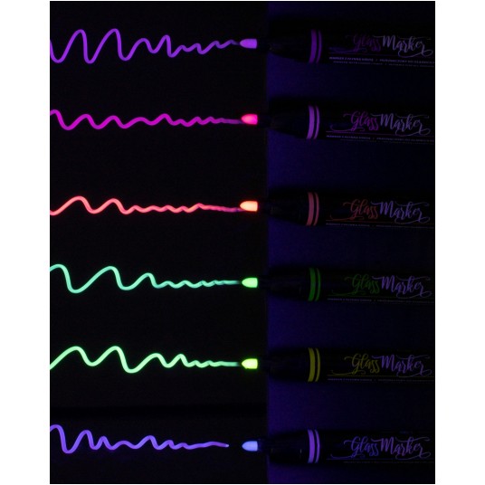 - Marker do szkła RMG-1 to kreda w płynie nie tylko dla dzieci - Niech nie zmyli cię nazwa, bo szkło to tylko jeden z kilkunastu materiałów na których płynna kreda może się na chwilę rozgościć. Dlaczego na chwilę? Dlatego, że w razie potrzeby wystarczy sucha szmatka, żeby rysunek, napis czy znacznik zniknął bez śladu - Marker kredowy z płynnym tuszem kredowym to uniwersalny marker do pisania i malowania po szkle i innych gładkich powierzchniach - Aby zacząć pisać trzeba przycisnąć końcówkę do powierzchni po której będziemy pisać w pozycji pionowej, tak aby umożliwić końcówce markera napełnienie się tuszem - Pozwala na niebanalną i oryginalną prezentację reklam i ważnych treści, doskonały do szklanych sklepowych witryn, okien restauracji, luster lub innych gładkich powierzchni - Okrągła, fibrowa końcówka pisząca o szerokości 4 mm - Linia pisania 1,5-3 mm - Tusz świecący pod lampą UV (tylko kolory żółty, niebieski, różowy, zielony, fioletowy i pomarańczowy) - Tusz nie pylący - Zmywalny - Do gładkich powierzchni - do szkła, ale również do tworzyw sztucznych, płytek, tablic suchościeralnych, potykaczy, itp. - Bezpieczny dla dzieci - Kolor: niebieski