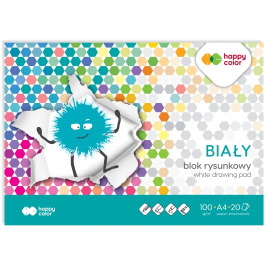 Blok rysunkowy biały A4, 100g/m2, 20 arkuszy, Happy Color