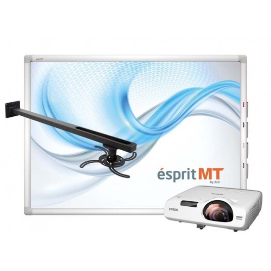 - Na zestaw składa sie: - Tablica interaktywna Esprit MT 80" - Projektor krótkoogniskowy Epson EB-520 - Uchwyt UPXS - Zestaw ésprit wall to połączenie tablicy ésprit multitouch z projektorem i uchwytem do bliskiej projekcji - Tablica 2x3 Esprit MT: - Najnowsza tablica interaktywna produkcji firmy 2x3 SA - Zastosowana technologia podczerwieni (IR) pozwala na bezproblemową i komfortową pracę 4 użytkowników jednocześnie, z założeniem, iż każdy z nich może wykonywać dowolną operację na tablicy – w tym oczywiście obsługę multigestów (m.in. zoomowania, rotacji, a także przewijania) - Urządzenie działa w standardzie Plug&Play, pozwalając na użytkowanie zaraz po podłączeniu do komputera oraz projektora - Łatwa obsługa (palcami bądź wskaźnikiem) - Doskonała precyzja - Jednokrotna kalibracja oraz możliwość użytkowania tablicy jako tradycyjnej tablicy suchościeralnej to główne cechy naszego produktu pozwalające na prowadzenie zajęć w sposób interesujący i dynamiczny