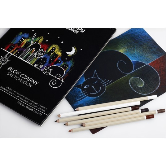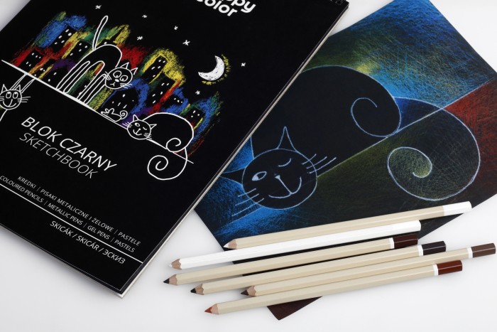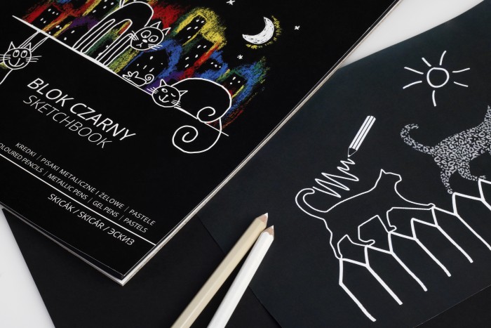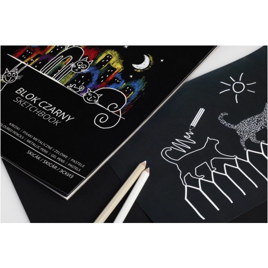 - Blok czarny na spirali polecany do zabawy i rysunku