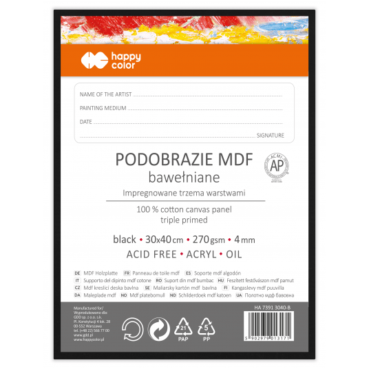 Podobrazie bawełniane Happy Color 30x40 cm czarne