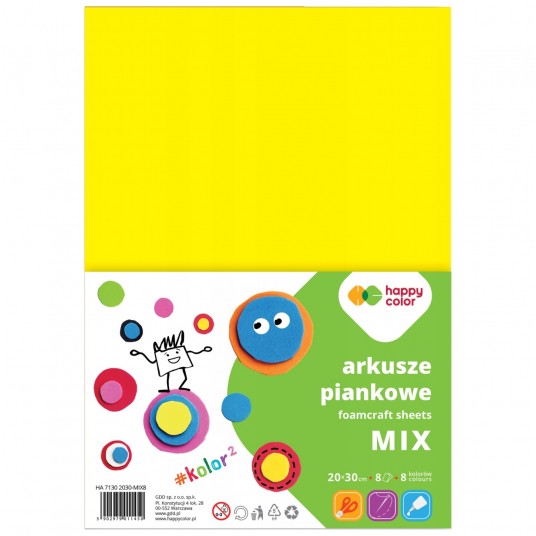 Arkusze piankowe A4, 8 sztuk, 8 kolorów, mix kolorów, Happy Color
