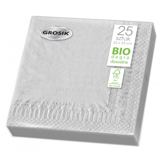 - Srebrne serwetki to idealny element dekoracyjny na stół - Będą pasować podczas uroczystości jak i na co dzień - Dwie warstwy zapewnią wytrzymałość podczas użytkowania - Bezpieczne dla środowiska - biodegradowalne - 50 sztuk w opakowaniu - Rozmiar: 33 x 33 cm