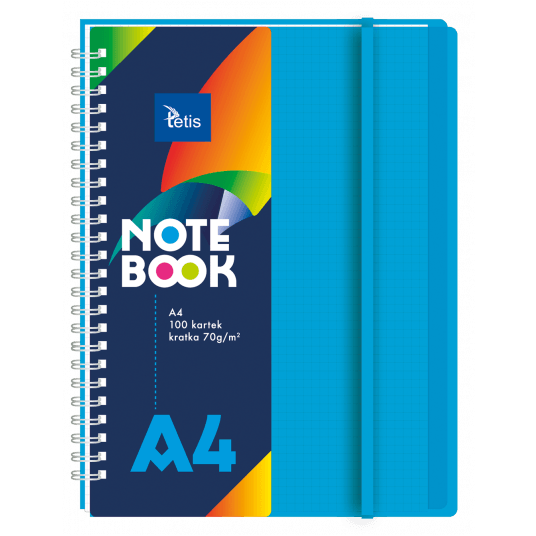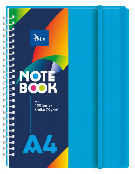 Niebieski kołonotatnik pp z przekładkami A4 Tetis, 100 kartek w kratkę