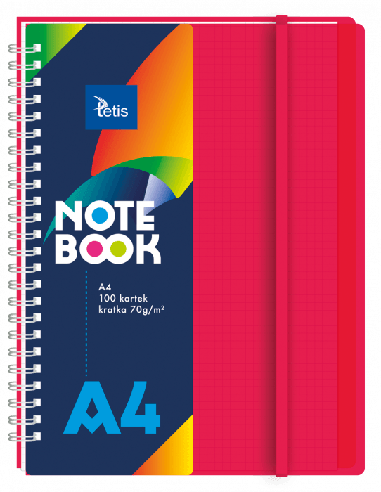 - Posiada plastikowe transparentne przekładki (5 sztuk) i gumkę dopasowaną do koloru okładki