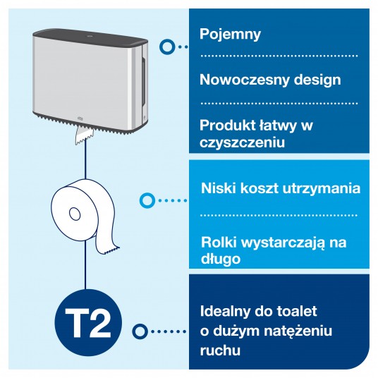 Dozownik na papier toaletowy Tork t2 mini jumbo ze stali nierdzewnej, zabudowany, linia image, 460006