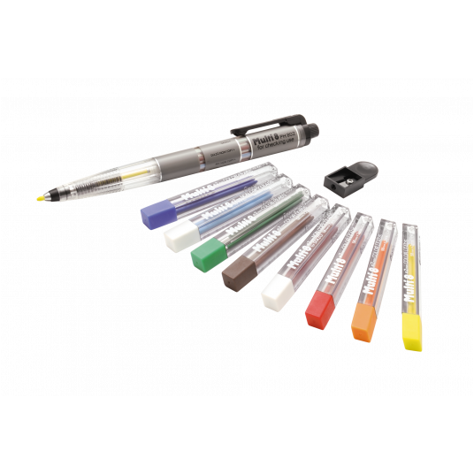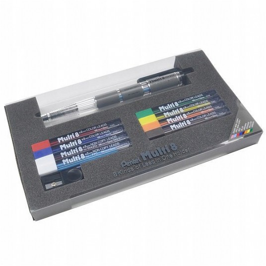 - Niezwykle kompleksowe narzędzie do pracy. - 8 kolorowych grafitów 2,0mm w jednej obudowie - Z dużą łatwością w dowolnej chwili masz możliwość przełączenia się na inny kolor - Wystarczy, że przekręcisz plastikowy klips uchwytu na żądany kolor - Następnie naciśnij górny przycisk i gotowe - W zestawie: - grafity PPC CN2-P no-copy (nie pojawia się, gdy dokument jest kopiowany przez urządzenie kopiujące typu suchego) - grafity DIAZO CN2-D non-copy (nie pojawia się, gdy dokument jest kopiowany przez urządzenie kopiujące typu mokrego) - kolor zielony - kolor żółty - kolor czerwony - kolor pomarańczowy - kolor brązowy - kolor niebieski