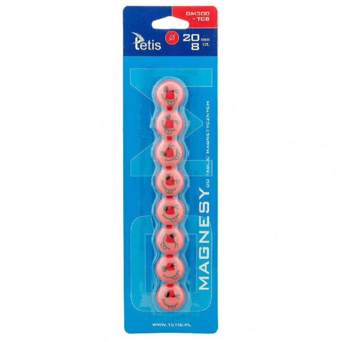 - Magnesy Tetis są niebywale mocne i trwałe, zapewniają prosty i praktyczny sposób przymocowania dokumentu lub notatki do powierzchni magnetycznych - Doskonałe do tablic i innych powierzchni magnetycznych - Pakowane na blistrze - Średnica: 20 mm - Kolor: czerwony - Wzór: z językiem - Ilość: 8 sztuk
