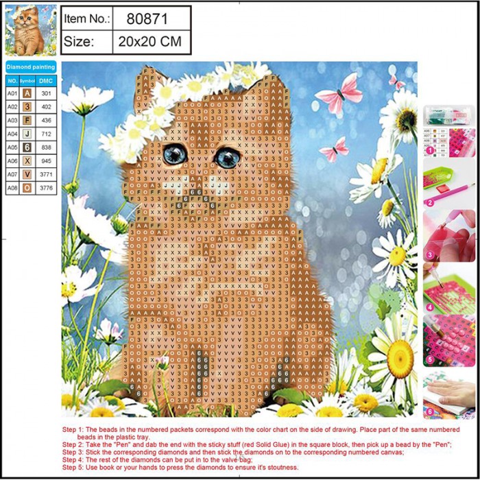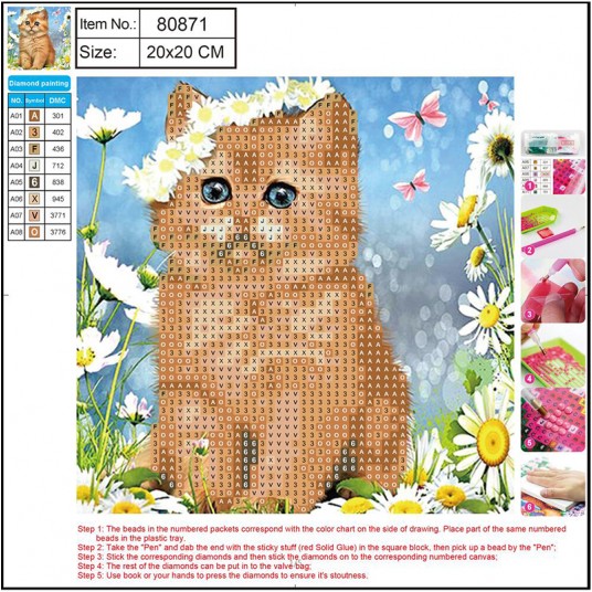 - Mozaika diamentowa to wspaniała forma spędzania wolnego czasu i nowe hobby, które pozwala odprężyć się, zrelaksować i oderwać od codziennych problemów - Układanie mozaiki to doskonała zabawa dla dorosłych i dla starszych dzieci, w wyniku której powstają oryginalne obrazy - ozdoba każdego pomieszczenia Zestaw zawiera: - Płótno o wielkości 20x20 cm, na którym nadrukowany został wzór i które pokryte jest specjalną warstwą klejącą, która umożliwia przyklejanie diamencików - Okrągłe diamenciki o różnych kolorach, które są posegregowane i spakowane w oznaczone odpowiednimi symbolami woreczki - Aplikator, który umożliwia nakładanie diamencików na płótnoplastikowy pojemnik do przechowywania diamencików - Suchy klej - Indeks diamencików wraz ze schematem i instrukcją ich naklejania