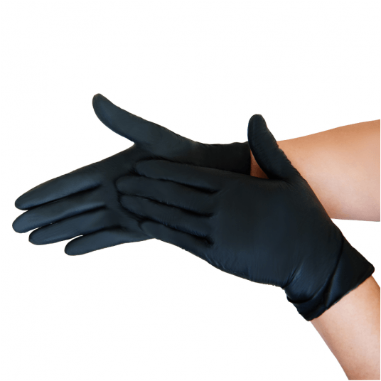 Jednorazowe, nitrylowe rękawice diagnostyczne z rolowanym mankietem. Produkt cechuje chlorowana powierzchnia wewnętrzna. Wyrób niesterylny i bezpudrowy, zgodny z normami technicznymi, dopuszczony do kontaktu z żywnością. ▪ tworzywo: 100 szt. nitryl (akrylonitryl-butadien) ▪ kolor: czarny ▪ mankiet: rolowany ▪ środek pudrujący: bezpudrowe, zawartość pozostałości pudru poniżej 2mg na rękawicę ▪ AQL: 1,0 ▪ powierzchnia wewnętrzna: chlorowana ▪ powierzchnia zewnętrzna: mikrotekstura na całej rękawicy z dodatkową teksturą na końcach palców ▪ zgodność z normami technicznymi: EN 455-1:2020+A1:2022, EN 455-2:2024, EN 455-3:2015, EN 455-4:2009, EN ISO 13485:2016+EN ISO 13485:2016/A11:2021, EN ISO 14971:2019+EN ISO 14971:2019/ A11:2021, EN 62366-1:2015+EN 62366-1:2015/A1:2020, EN ISO 15223-1:2021, EN ISO 20417:2021, EN ISO 10993-1:2020, EN ISO 10993-5:2009, EN ISO 10993-10:2013, EN ISO 10993-23:2013, EN ISO 11737-1:2018+ EN ISO 11737-1:2018/A1:2021, EN ISO 21420:2020+A1:2024, EN ISO 374-1:2016+A1:2018, EN ISO 374-2:2019, EN 16523-1:2015 + A1 :2018, EN ISO 374-4:2019, EN ISO 374-5:2016, ASTM F1671, ASTM D6978 , ASTM D6319 ▪ dopuszczone do kontaktu z żywnością: zgodnie z Rozporządzeniem (WE) 1935/2004 oraz Rozporządzeniem Komisji (WE) 10/2011 ▪ system zapewnienia jakości: proces produkcyjny zgodny z EN ISO 9001 oraz EN ISO 13485 ▪ opakowanie handlowe: 100 szt., z kolorystycznym rozróżnieniem opakowań w zależności od rozmiaru ▪ rozmiary: S ▪ jednorazowego użytku ▪ niesterylne ▪ okres trwałości: 5 lat
