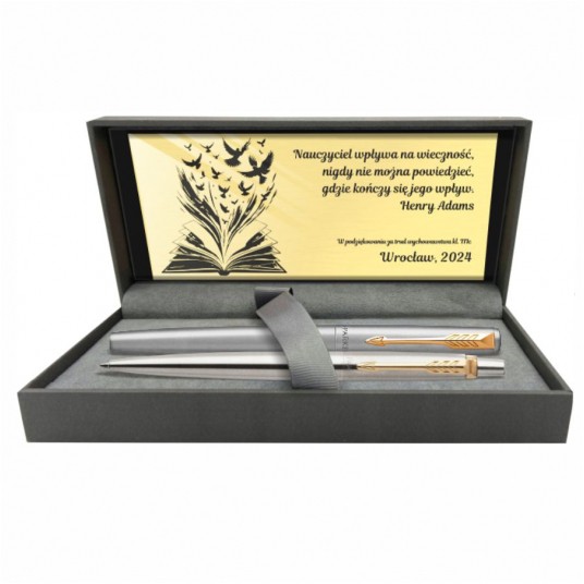 - Znakomity detal linii Jotter sprawia, że będzie to dobry prezent dla absolwentów, osób poszukujących pierwszej pracy oraz dla każdego, kto ceni dopracowany szczegół - Długopisy Parker często kupowane są przez lekarzy i pracowników służby zdrowia - Parker Jotter będzie trafionym upominkiem na wszelkiego rodzaju uroczystości i jubileusze oraz firmowym podarunkiem - Długopis i pióro dla osób zdecydowanych, szukających ponadczasowych rozwiązań - Stalowy korpus długopisu z szlachetnej, nierdzewnej stali - Wykończenia platerowane 23-karatowym złotem - Długopis wyposażony w przyciskowy mechanizm wysuwania wkładu - Pióro z stalową stalówką o grubości M - W zestawie eleganckie, ozdobne pudełko na 2 produkty