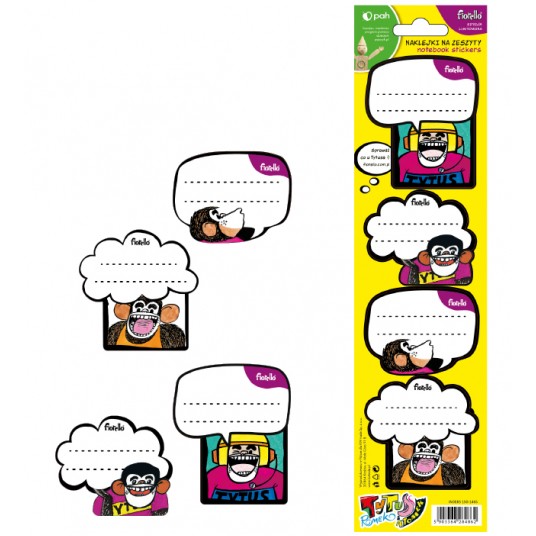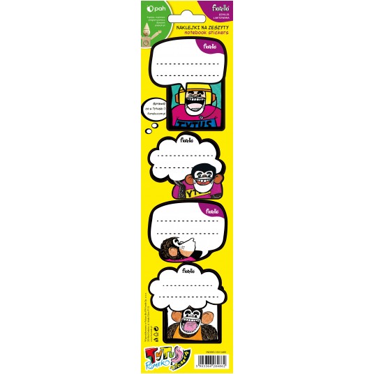 - Zestaw naklejek do oklejenia i podpisania zeszytów, książek i podręczników, a także innych szkolnych akcesoriów - 4 naklejki na jednym listku - Każda z miejscem na wpis i postacią Tytusa