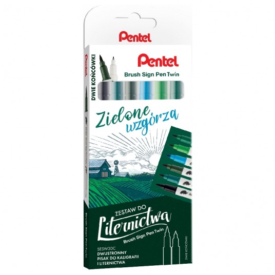 Zestaw do liternictwa Pentel Brush Sign Pen Twin zielone wzgórza
