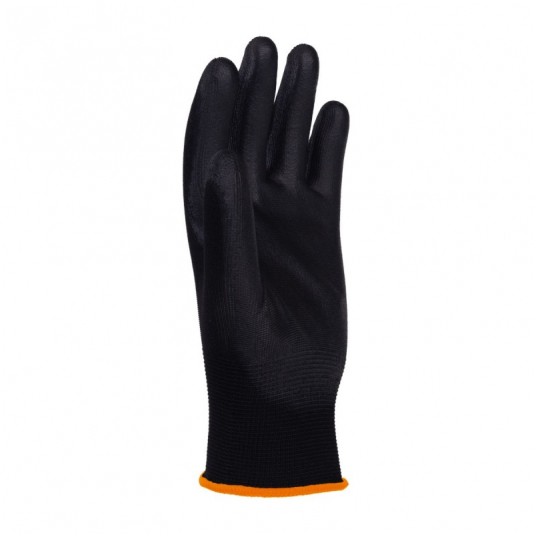 - Rękawice wykonane z dobrej jakości dzianiny poliestrowej w kolorze czarnym, powleczone w części chwytnej czarnym poliuretanem - Przeznaczone do prac montażowych, magazynowych, mechanicznych, elektrotechnicznych, serwisowych, malarskich, remontowych, przemysłowych, ogrodowych oraz zajęć hobbistycznych - Powłoka z czarnego poliuretanu o wysokiej odporności na ścieranie - Zakończone elastycznym ściągaczem - Rękawice ochronne chroniące przed uszkodzeniami mechanicznymi - Kat: II - Zgodność z normami EN 388:2016+A1:2018 (4131X), EN ISO 21420:2020 - Ścieg: 13g - Materiały: poliester/poliuretan - Kolor: czarny - Rozmiar: 7