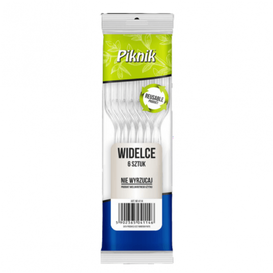 - Widelce wielokrotnego użytku "Piknik" są wykonane wyłącznie z najwyższej jakości surowców - Posiadają niezbędne atesty dopuszczające do kontaktu z żywnością - Do wielokrotnego użytku - 6 sztuk w opakowaniu
