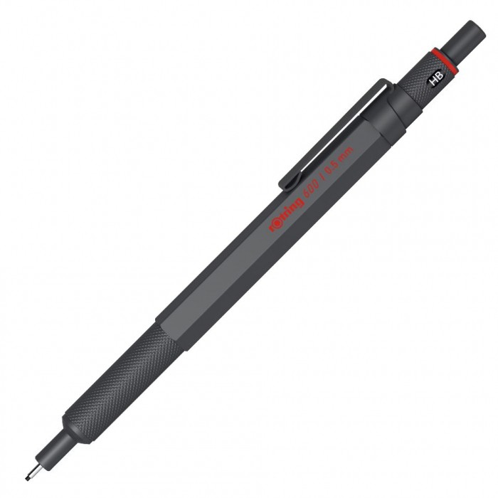- Ołówek automatyczny rOtring 600 0.5 mm to doskonałe narzędzie stworzone do długotrwałego użytkowania - Metalowy korpus jest doskonale wyważony, by pisać i rysować bez zmęczenia - Mosiężny mechanizm zapewnia precyzję przy wysuwaniu rysika, a dostosowywany wskaźnik twardości pozwala na łatwą identyfikację podczas pracy - Jego sześciokątny kształt zapobiega staczaniu się ze stołu lub deski - Mocowana na stałe tuleja zapobiega łamaniu rysika i zapewnia łatwy dostęp do strony przy precyzyjnym kreśleniu z linijką - Doskonałe do częstego pisania, rysowania i szkicowania - Metalowy, karbowany uchwyt jest wygodny przy częstym pisaniu i rysowaniu - Zawiera także gumkę wbudowaną w przycisk pod zatyczką - Podczas kreślenia z linijką ruchoma tuleja zapewnia wysoką odporność na złamania rysika i dobrą widoczność powierzchni - Dzięki sześciokątnemu przekrojowi ołówek jest zawsze tam, gdzie tego oczekujesz - Wskaźnik twardości rysika pozwala na jego szybką identyfikację - Grubość rysika: 0,5mm - Kolor korpusu: grafitowy