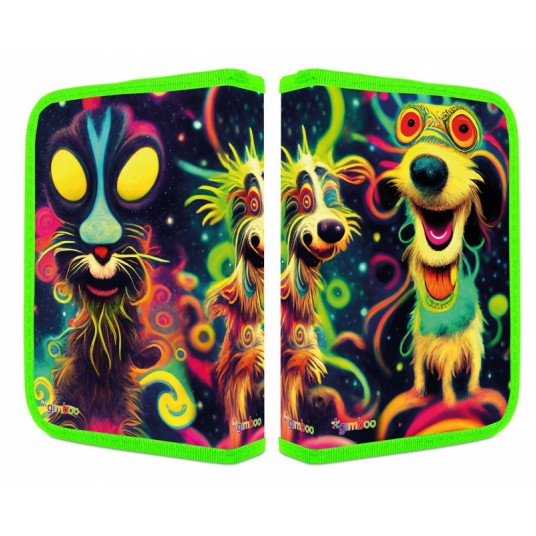 piórnik szkolny, nadruk z jednej strony, z wyposażeniem GIMBOO materiał PVC, zamek błyskawiczny posiada jedną komorę i dwie przekładki z dodatkową kieszonką kolor: mix kolorów, wzorów