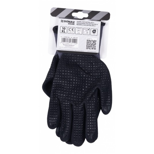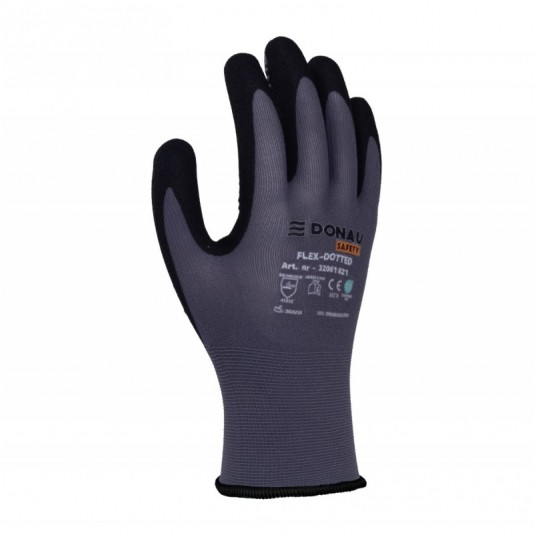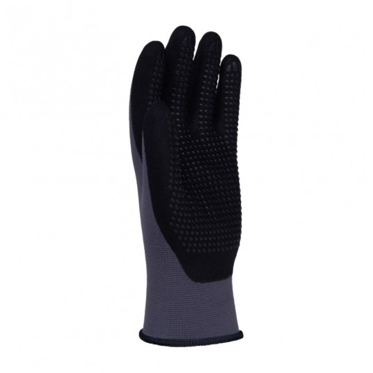 - Rękawice wykonane z dobrej jakości dzianiny nylonowej z elastanem w kolorze szarym, powleczone w części chwytnej ultradrobną pianką nitrylową z nakropieniem w kolorze czarnym - Przeznaczone do prac montażowych, magazynowych, mechanicznych, serwisowych, transportowych, budowlanych, remontowych, przemysłowych, rolniczych, ogrodowych oraz zajęć hobbistycznych - Powłoka z ultradrobnej pianki nitrylowej zapewnia bardzo dużą odporność na ścieranie - Wysoki komfort użytkowania, doskonałe dopasowanie do dłoni oraz wysoka oddychalność - Duża manualność oraz precyzyjny chwyt - doskonały wybór przy pracach montażowych - Nakropienie w części chwytnej zwiększające przyczepność - Zwiększona odporność na oleje oraz smary - Zakończone elastycznym ściągaczem - OEKO-TEX® STANDARD 100 - Rękawice ochronne chroniące przed uszkodzeniami mechanicznymi - Kat: II - Zgodność z normami EN 388:2016+A1:2018 (4131X), EN ISO 21420:2020 - Ścieg: 15g - Materiały: nylon, elastan/pianka nitrylowa - Kolor: szaro-czarny - Rozmiar: 10