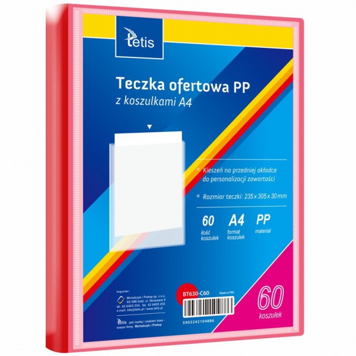 - Wymiary teczki: 305x235 mm, grubość tworzywa PP: 0,40 mm
