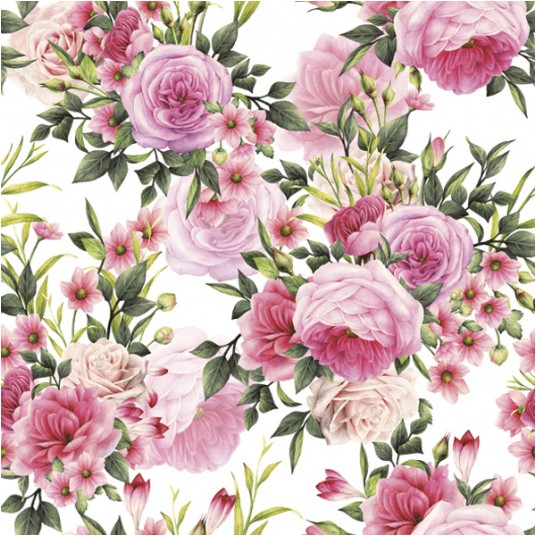Serwetki Papierowe Rose Twigs with Leaves and Flowers 33 x 33 cm Daisy Lunch napkins