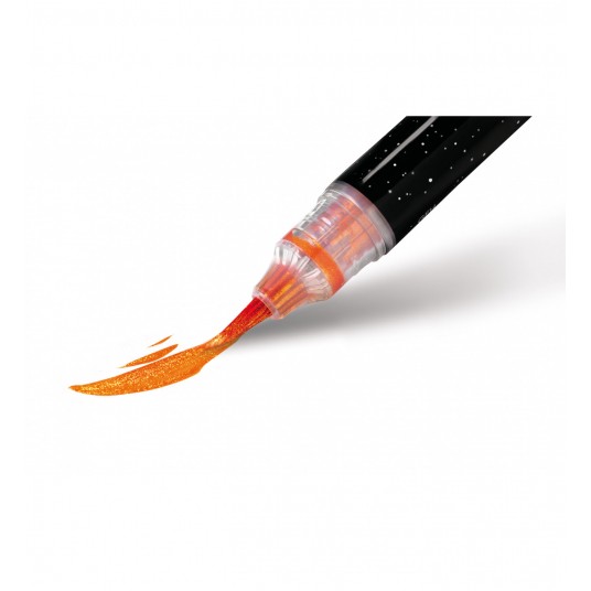 Brush metaliczny który idealnie sprawdza się przy zdobieniu kartek okolicznościowych. Potrząśnij nim kilka razy przed użyciem, aby tusz wymieszał się z drobinkami brokatu i zacznij tworzyć. Dostępny w 8 atrakcyjnych kolorach: