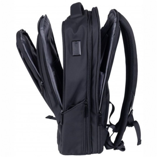 - Stylowy plecak mieszczący laptopa 15,6'' - Idealnie sprawdzi się podczas spotkań biznesowych, krótkich wycieczek, a także do pracy i na uczelnię - Wykonany z nieprzemakalnego materiału film coating, z podszewką 210D - Wyposażony w gniazdo USB wraz z kablem do podłączenia powerbanku - Posiada ukrytą kieszeń chroniącą przed kradzieżą, co zapewnia bezpieczeństwo i wygodę na co dzień - Każdy plecak zapakowany jest indywidualnie w karton - Pojemność: 16 l - Wymiary plecaka: 29x13x43 cm - Wymiary kieszeni na laptopa: 28x4x26,5 cm - Wymiary kieszeni na tablet: 24x21 cm - Materiał: film coating, nieprzemakalny - Gwarancja: 5 lat - Kolor: czarny