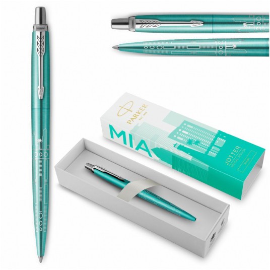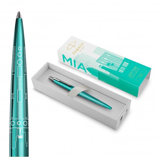 - Edycja Specjalna Jotter Global Icons - Najnowsza kolekcja 2. Edycji Specjalnej Jotter czerpie inspirację z miast całego świata - Siódmy długopis z serii Global Icons oddaje rytm i harmonię Miami - Jego wyróżniająca linia szczytów słynnych budynków wyznacza wzór mistrzowsko naniesiony laserem na turkusowy korpus - To doskonały towarzysz podróży, zapewniający inspirację dla Twojej kolejnej wyprawy - Nasadka: stal szlachetna z lakierem w kolorze turkusowym - Korpus: stal szlachetna z lakierem w kolorze turkusowym - Wzór: grawerowana laserowo panorama Miami - Klip: stal szlachetna - Opakowanie: specjalnie zaprojektowane opakowanie prezentowe - Długopis uzupełniany oryginalnymi wkładami Parker do długopisów i długopisów żelowych