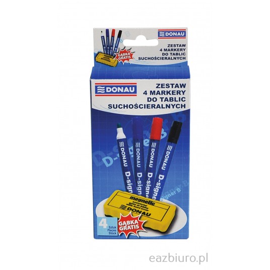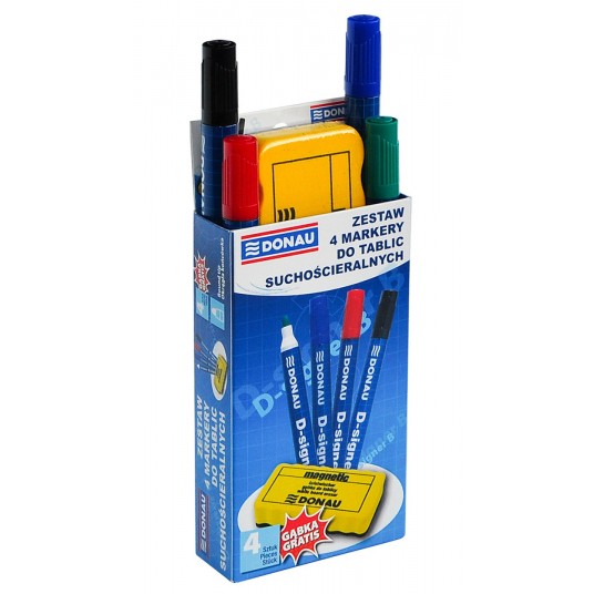 - Zestaw czterech markerów z gąbką do tablic suchościeralnych - Markery odporne na wysychanie - do 72 godzin bez skuwki - Nietoksyczny tusz - Intensywny kolor - Końcówka okrągła: 4mm - Grubość linii pisania: 2-4mm - Długość linii pisania: 200m - Gąbka wykonana z przyjemnego w dotyku materiału - Posiada warstwę magnetyczną, co pozwala na przytwierdzanie do tablic magnetycznych - Spód wykończony filcem umożliwiającym usuwanie śladów markerów - Nie rysuje powierzchni tablicy - Charakteryzuje się ergonomicznym kształtem ułatwiającym długotrwałe trzymanie w dłoni - Występuje w jaskrawym kolorze ułatwiającym szybkie odnalezienie - Wymiary: 110 x 57 x 25 mm