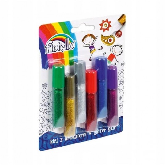– Dekoracyjny bezbarwny klej w płynie zawierający drobinki brokatu – Wygodny: namaluj wzór za pomocą kleju i poczekaj aż zaschnie – Nie wymaga dodatkowych akcesoriów, nie brudzi, nie rozsypuje się – Po zaschnięciu drobinki brokatu nie wykruszają się – Przeznaczony do dekoracji papieru, kartonu, drewna i innych powierzchni – 6 kolorów x 6 ml – Zgodne z wymaganiami UE