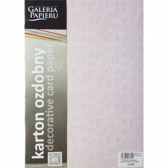 - Karton 220g/m2 z nadrukiem drobnych srebrnych różyczek